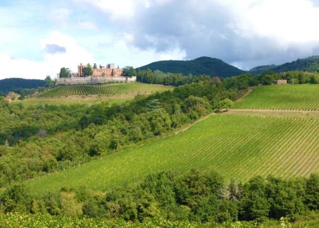 The heart of the Ricasoli wine production comes from the Brolio castello, a magnificent castle located in the commune of Gaiole in Chianti, which was built as an outpost to defend Florence from the rival city of Siena. Within the estate, ancient cannonballs and even more recent WWII artillery shells have been found, evidence of the historical strategic importance of the castle with views of the entire Chianti Classico area. The 3,000 acre estate includes 580 acres of sustainably farmed vineyards, ranging in altitude from 800 to 1,500 feet. Each plot is harvested and fermented separately with meticulous dedication.