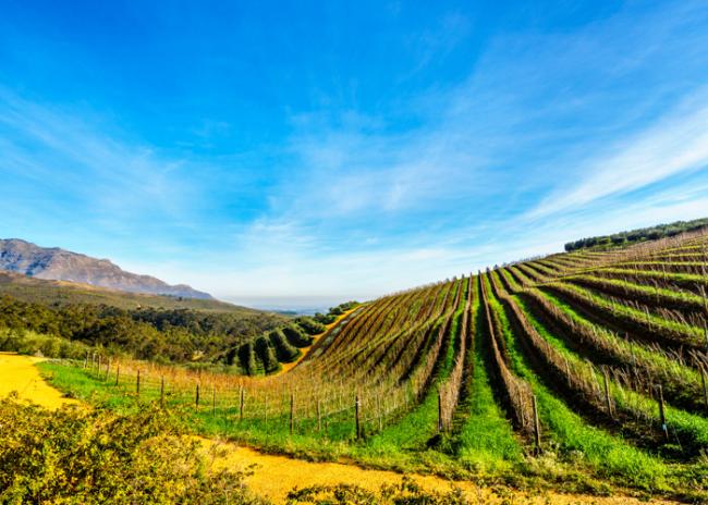 The vineyards are positioned primarily on cooler south to southeast facing slopes, at an altitude ranging from 650 to 850 feet above sea level. Cooling afternoon breezes from False Bay provide natural air conditioning for the vineyards during the warm summer months, cooling the temperatures by an average 18+ degrees. The vineyards were converted to organic farming practices in 2014.